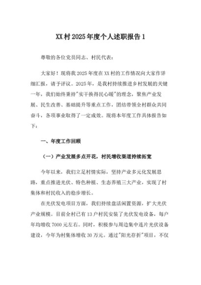 【七哥公文】2025年:XX村2025年度个人述职报告1+更多免费公文+VX:QiGeGongWen2024