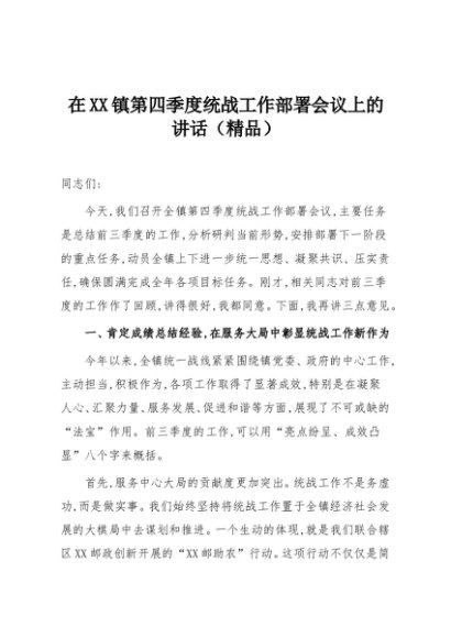 / 【七哥公文】2025年:在XX镇第四季度统战工作部署会议上的讲话(精品)+更多免费公文+VX:QiGeGongWen2024
