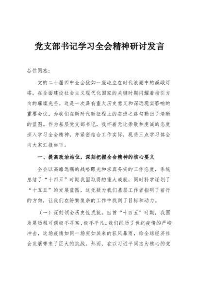 / 【七哥公文】2025年:党支部书记学习全会精神研讨发言+更多免费公文+VX:QiGeGongWen2024