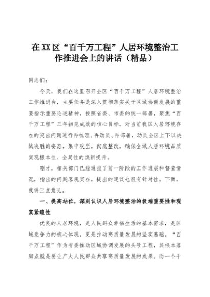 【七哥公文】2025年:在XX区“百千万工程”人居环境整治工作推进会上的讲话(精品)+更多免费公文+VX:QiGeGongWen2024