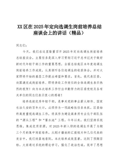 【七哥公文】2025年:XX区在2025年定向选调生岗前培养总结座谈会上的讲话(精品)+更多免费公文+VX:QiGeGongWen2024