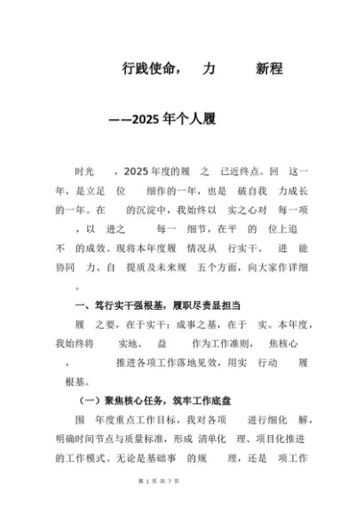 【七哥公文】2025年:2025年个人履职报告:深耕笃行践使命,蓄力扬帆启新程+更多免费公文+VX:QiGeGongWen2024