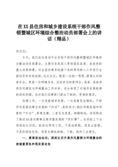 【七哥公文】2025年:在XX县住房和城乡建设系统干部作风整顿暨城区环境综合整治动员部署会上的讲话(精品)+更多免费公文+VX:QiGeGongWen2024