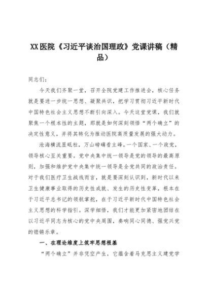 / 【七哥公文】2025年:XX医院《习近平谈治国理政》党课讲稿(精品)+更多免费公文+VX:QiGeGongWen2024