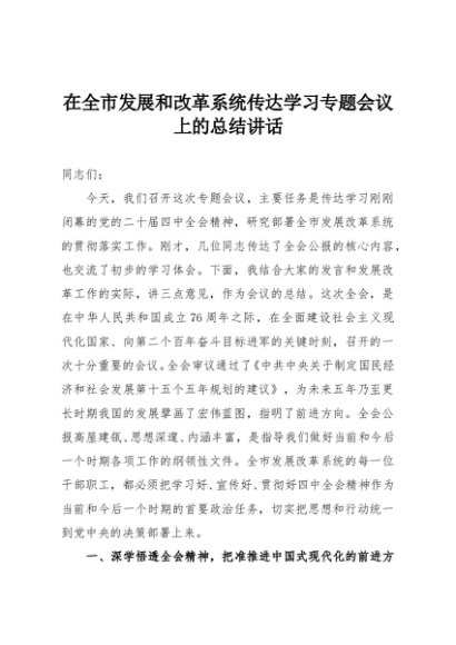 / 【七哥公文】2025年:在全市发展和改革系统传达学习专题会议上的总结讲话+更多免费公文+VX:QiGeGongWen2024