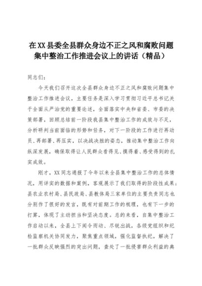 【七哥公文】2025年:在XX县委全县群众身边不正之风和腐败问题集中整治工作推进会议上的讲话(精品)+更多免费公文+VX:QiGeGongWen2024