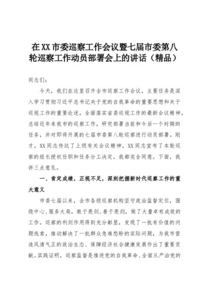 【七哥公文】2025年:在XX市委巡察工作会议暨七届市委第八轮巡察工作动员部署会上的讲话(精品)+更多免费公文+VX:QiGeGongWen2024