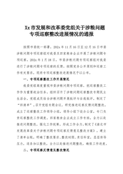 【七哥公文】2025年:Xx市发展和改革委党组关于涉粮问题专项巡察整改进展情况的通报+更多免费公文+VX:QiGeGongWen2024