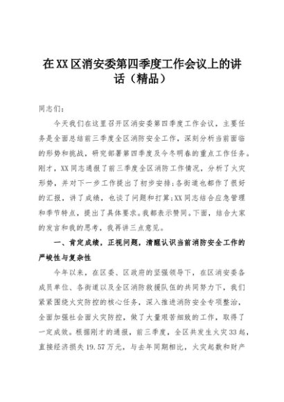 / 【七哥公文】2025年:在XX区消安委第四季度工作会议上的讲话(精品)+更多免费公文+VX:QiGeGongWen2024