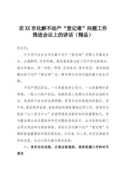 【七哥公文】2025年:在XX市化解不动产“登记难”问题工作推进会议上的讲话(精品)+更多免费公文+VX:QiGeGongWen2024