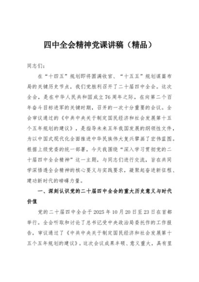 / 【七哥公文】2025年:四中全会精神党课讲稿(精品)+更多免费公文+VX:QiGeGongWen2024