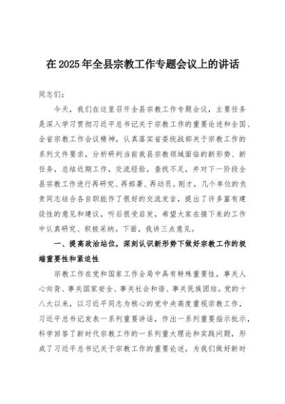 / 【七哥公文】2025年:在2025年全县宗教工作专题会议上的讲话+更多免费公文+VX:QiGeGongWen2024