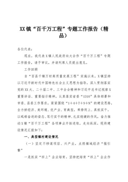 / 【七哥公文】2025年:XX镇“百千万工程”专题工作报告(精品)+更多免费公文+VX:QiGeGongWen2024