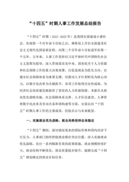 / 【七哥公文】2025年:“十四五”时期人事工作发展总结报告+更多免费公文+VX:QiGeGongWen2024