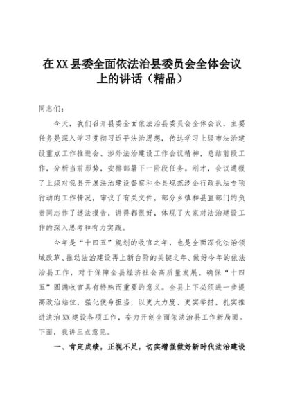 【七哥公文】2025年:在XX县委全面依法治县委员会全体会议上的讲话(精品)+更多免费公文+VX:QiGeGongWen2024