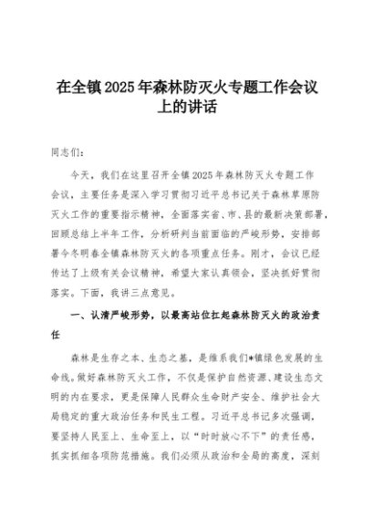 / 【七哥公文】2025年:在全镇2025年森林防灭火专题工作会议上的讲话+更多免费公文+VX:QiGeGongWen2024
