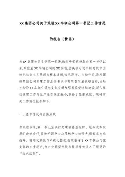 【七哥公文】2025年:XX集团公司关于派驻XX车辆公司第一书记工作情况的报告(精品)_副本+更多免费公文+VX:QiGeGongWen2024