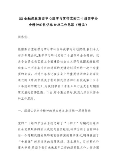 【七哥公文】2025年:XX金融控股集团中心组学习贯彻党的二十届四中全会精神的认识体会与工作思路(精品)_副本+更多免费公文+VX:QiGeGongWen2024