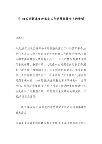 【七哥公文】2025年:在XX公司巡察整改落实工作动员部署会上的讲话_副本+更多免费公文+VX:QiGeGongWen2024