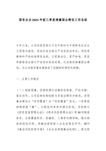 【七哥公文】2025年:国有企业2025年前三季度清廉国企建设工作总结_副本+更多免费公文+VX:QiGeGongWen2024