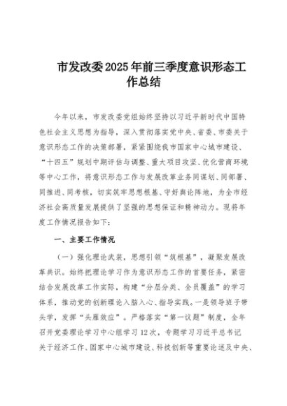 / 【七哥公文】2025年:市发改委2025年前三季度意识形态工作总结+更多免费公文+VX:QiGeGongWen2024