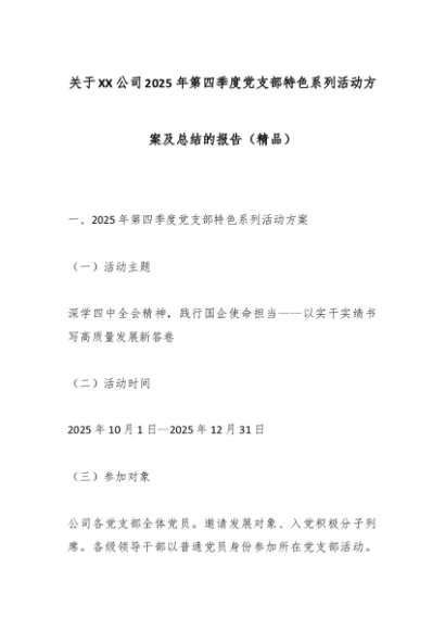 【七哥公文】2025年:关于XX公司2025年第四季度党支部特色系列活动方案及总结的报告(精品)_副本+更多免费公文+VX:QiGeGongWen2024