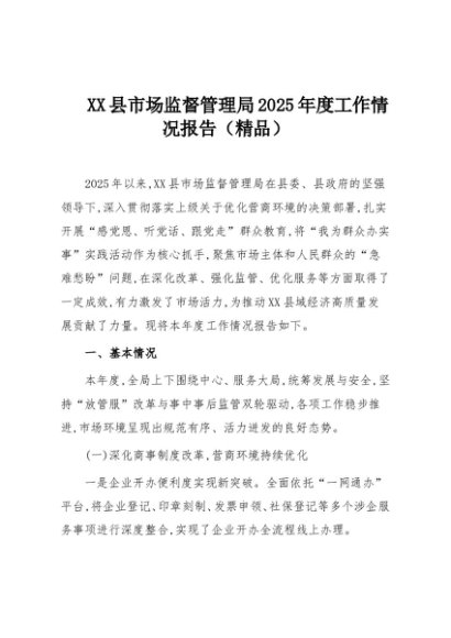 【七哥公文】2025年:XX县市场监督管理局2025年度工作情况报告(精品)+更多免费公文+VX:QiGeGongWen2024