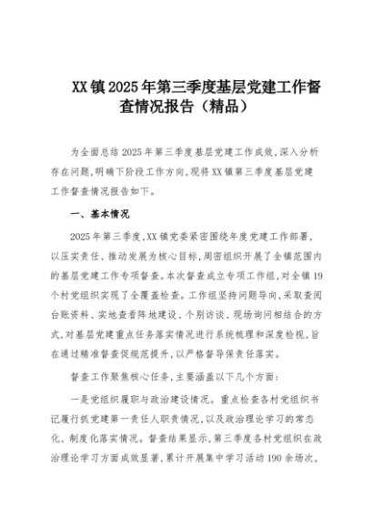 【七哥公文】2025年:XX镇2025年第三季度基层党建工作督查情况报告(精品)+更多免费公文+VX:QiGeGongWen2024