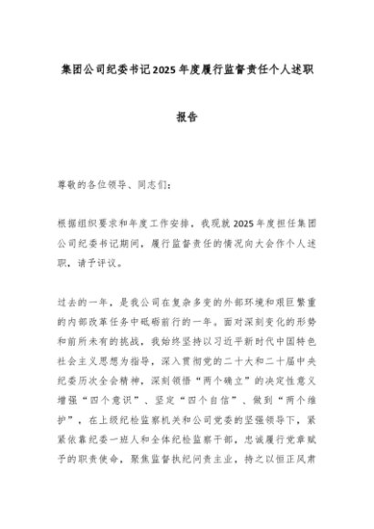 【七哥公文】2025年:集团公司纪委书记2025年度履行监督责任个人述职报告_副本+更多免费公文+VX:QiGeGongWen2024