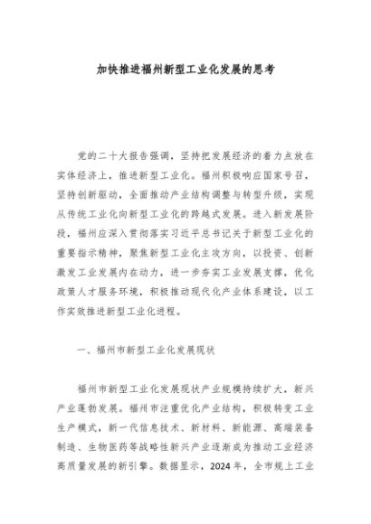 / 【七哥公文】2025年:加快推进福州新型工业化发展的思考_副本+更多免费公文+VX:QiGeGongWen2024