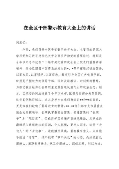 / 【七哥公文】2025年:在全区干部警示教育大会上的讲话+更多免费公文+VX:QiGeGongWen2024
