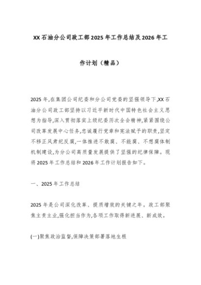 【七哥公文】2025年:XX石油分公司政工部2025年工作总结及2026年工作计划(精品)_副本+更多免费公文+VX:QiGeGongWen2024