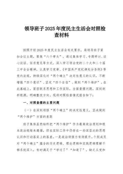 / 【七哥公文】2025年:领导班子2025年度民主生活会对照检查材料+更多免费公文+VX:QiGeGongWen2024