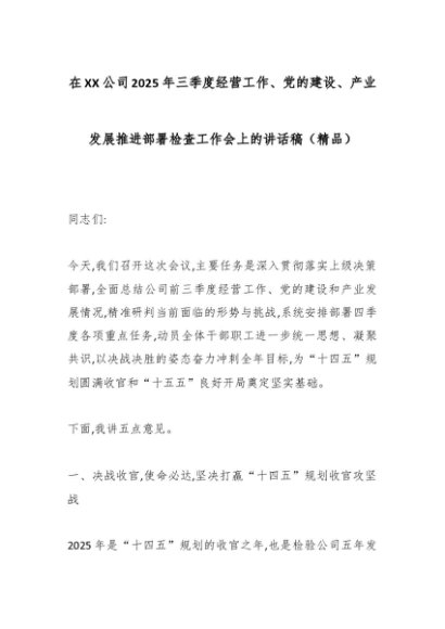 【七哥公文】2025年:在XX公司2025年三季度经营工作、党的建设、产业发展推进部署检查工作会上的讲话稿(精品)_副本+更多免费公文+VX:QiGeGongWen2024