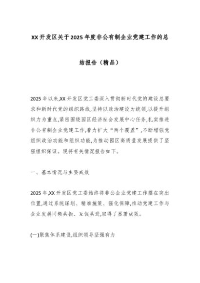 【七哥公文】2025年:XX开发区关于2025年度非公有制企业党建工作的总结报告(精品)_副本+更多免费公文+VX:QiGeGongWen2024