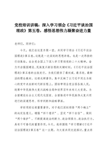 【七哥公文】2025年:党校培训讲稿:深入学习领会《习近平谈治国理政》第五卷,感悟思想伟力凝聚奋进力量+更多免费公文+VX:QiGeGongWen2024