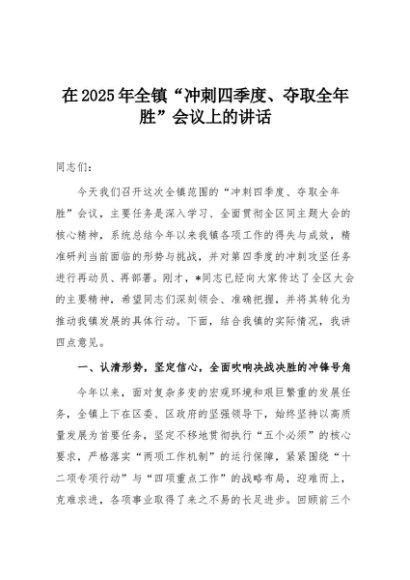 【七哥公文】2025年:在2025年全镇“冲刺四季度、夺取全年胜”会议上的讲话+更多免费公文+VX:QiGeGongWen2024