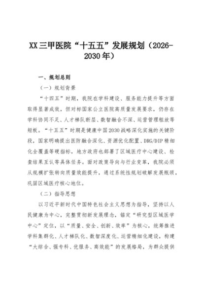 【七哥公文】2025年:XX三甲医院“十五五”发展规划(2026-2030年)+更多免费公文+VX:QiGeGongWen2024