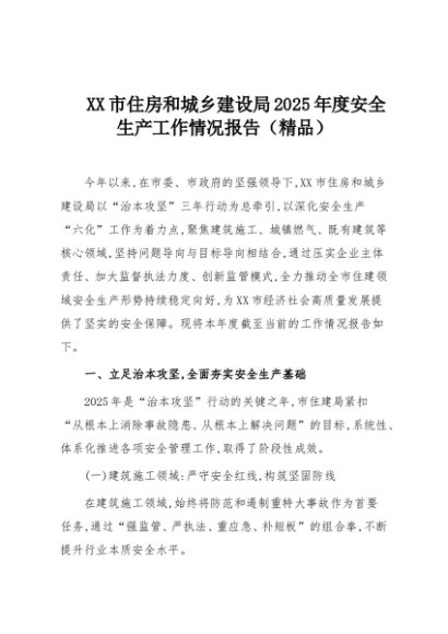 【七哥公文】2025年:XX市住房和城乡建设局2025年度安全生产工作情况报告(精品)+更多免费公文+VX:QiGeGongWen2024