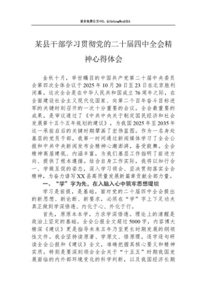 / 【七哥公文】2025年:某县干部学习贯彻党的二十届四中全会精神心得体会+更多免费公文+VX:QiGeGongWen2024