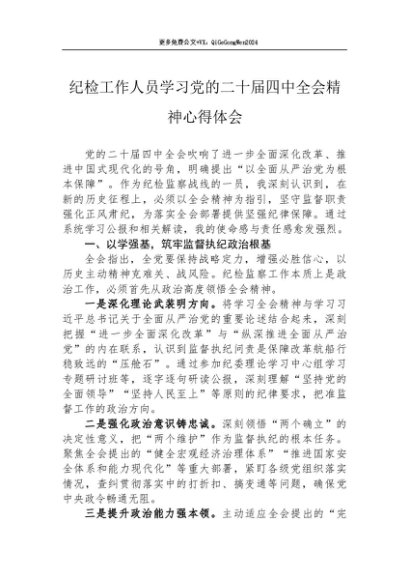 【七哥公文】2025年:纪检工作人员学习党的二十届四中全会精神心得体会+更多免费公文+VX:QiGeGongWen2024