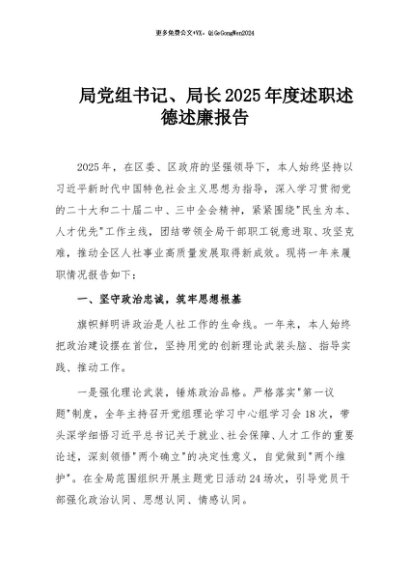 / 【七哥公文】2025年:局党组书记、局长2025年度述职述德述廉报告+更多免费公文+VX:QiGeGongWen2024