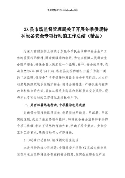 【七哥公文】2025年:XX县市场监督管理局关于开展冬季供暖特种设备安全专项行动的工作总结(精品)+更多免费公文+VX:QiGeGongWen2024