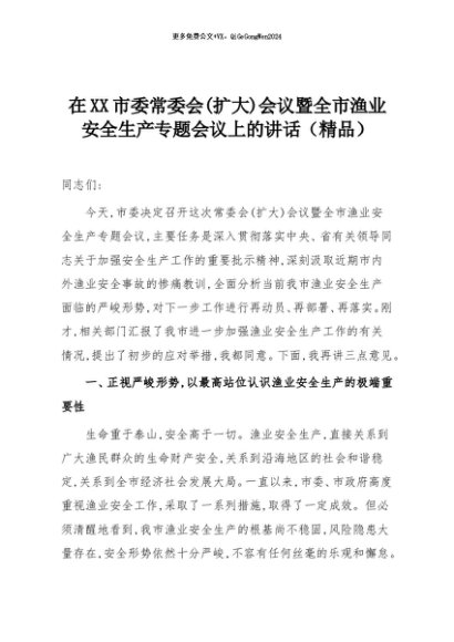 【七哥公文】2025年:在XX市委常委会(扩大)会议暨全市渔业安全生产专题会议上的讲话(精品)+更多免费公文+VX:QiGeGongWen2024