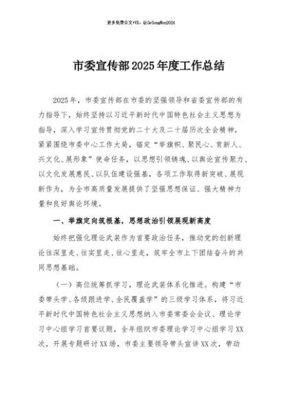 / 【七哥公文】2025年:市委宣传部2025年度工作总结+更多免费公文+VX:QiGeGongWen2024