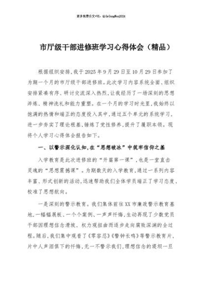 【七哥公文】2025年:市厅级干部进修班学习心得体会(精品)+更多免费公文+VX:QiGeGongWen2024