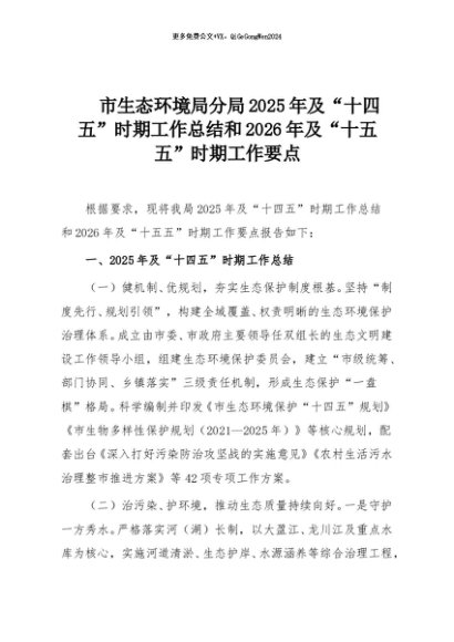 【七哥公文】2025年:市生态环境局分局2025年及“十四五”时期工作总结和2026年及“十五五”时期工作要点+更多免费公文+VX:QiGeGongWen2024