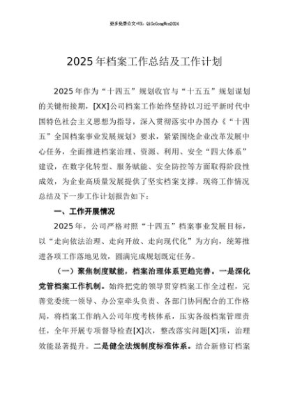 / 【七哥公文】2025年:2025年档案工作总结及工作计划+更多免费公文+VX:QiGeGongWen2024