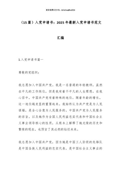 【七哥公文】2025年:(15篇)入党申请书:2025年最新入党申请书范文汇编+更多免费公文+VX:QiGeGongWen2024
