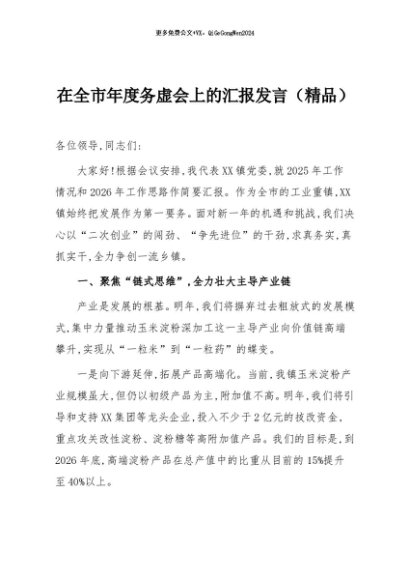 / 【七哥公文】2025年:在全市年度务虚会上的汇报发言(精品)+更多免费公文+VX:QiGeGongWen2024